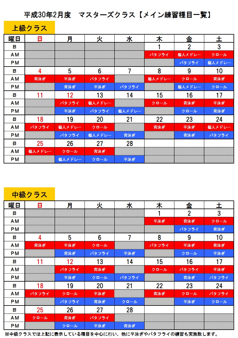 マスターズクラス練習メニュー◆2月