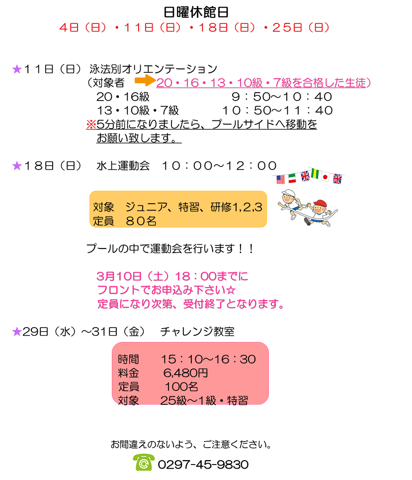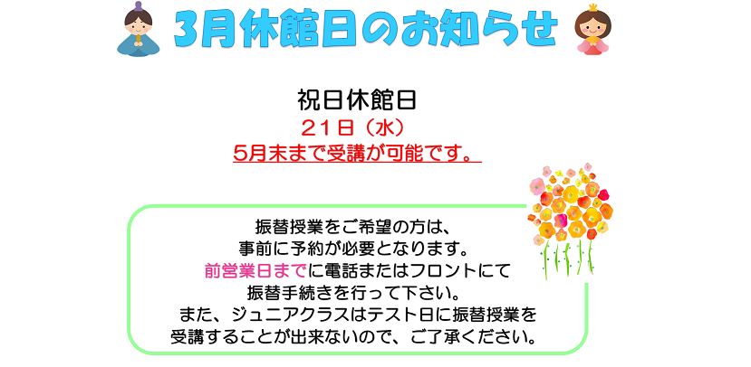 3月休館日のお知らせ