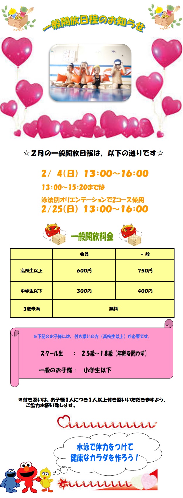 2月☆一般開放のお知らせ