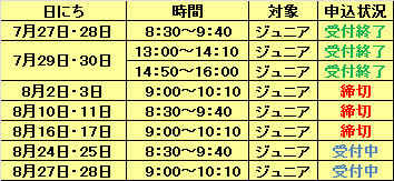 受付中と記載している場合でも、定員になり次第締め切らせて頂きます。
