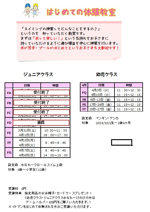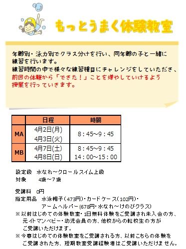 この春特別教室といたしまして、3種類の体験教室をご用意いたしました。