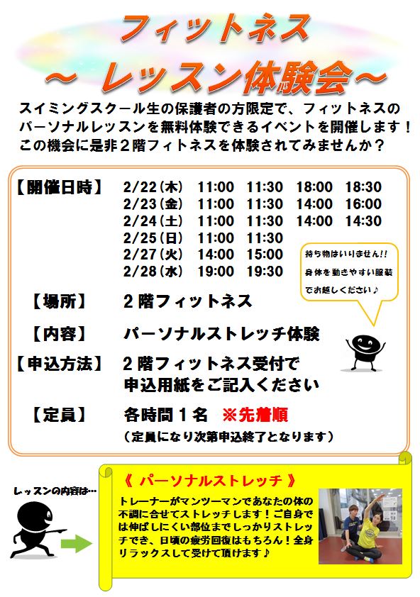 2階フィットネスでレッスン体験イベントを無料開催いたします!!