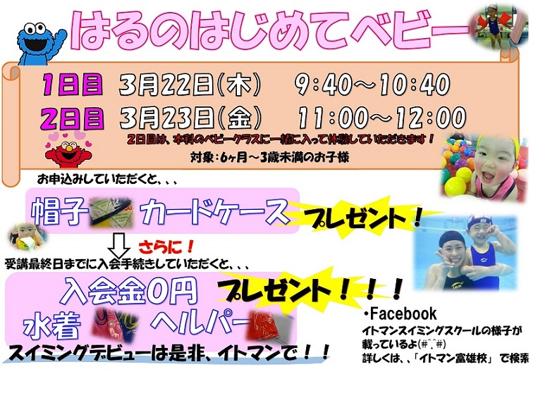 ●水着、スイムキャップ(お子様・保護者様共にご用意ください)※ビキニ不可(女性)