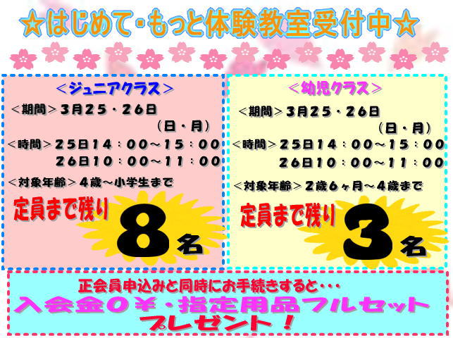 はじめて・もっと体験教室受付中!