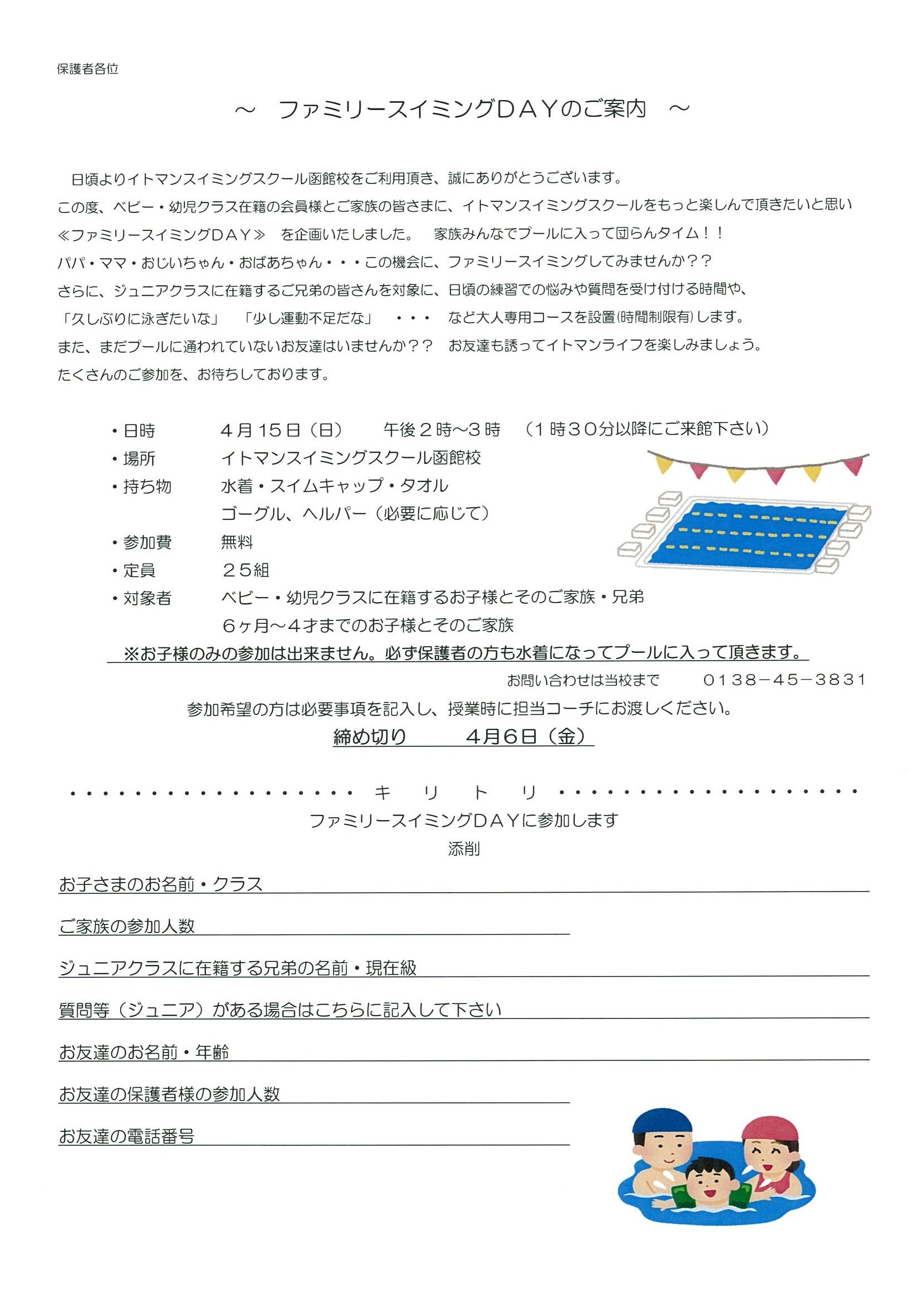 〜ファミリースイミングDAYのご案内〜
