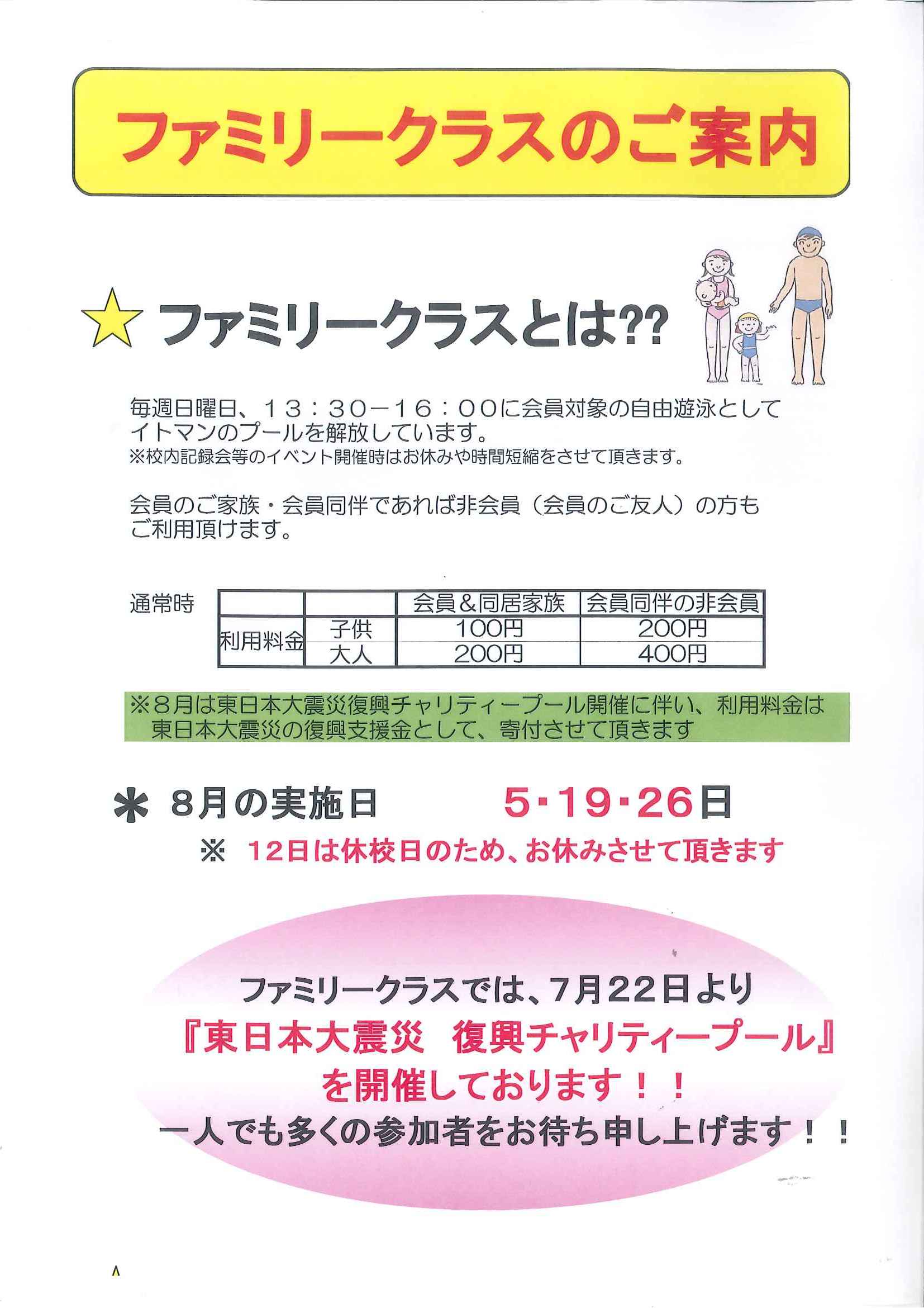 ★ファミリークラスのご案内★