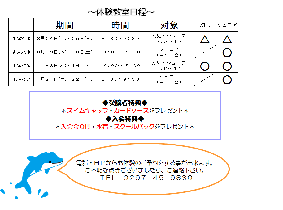 はじめての体験教室申込み募集中!