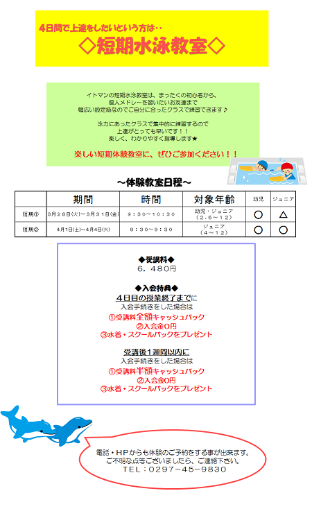 短期教室申込み募集中!!