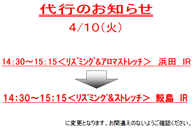 ★4月10日(火)レッスン代行のお知らせ★