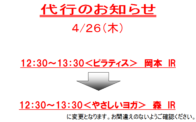 ★4月26日(木)レッスン代行のお知らせ★