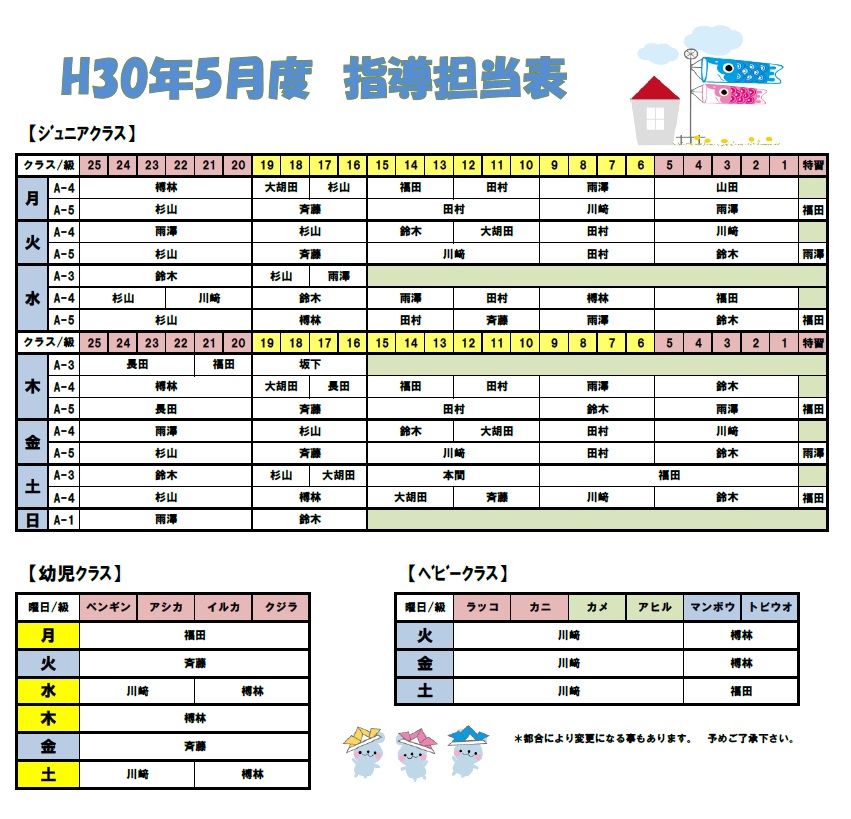 【 5月 指導担当表 】