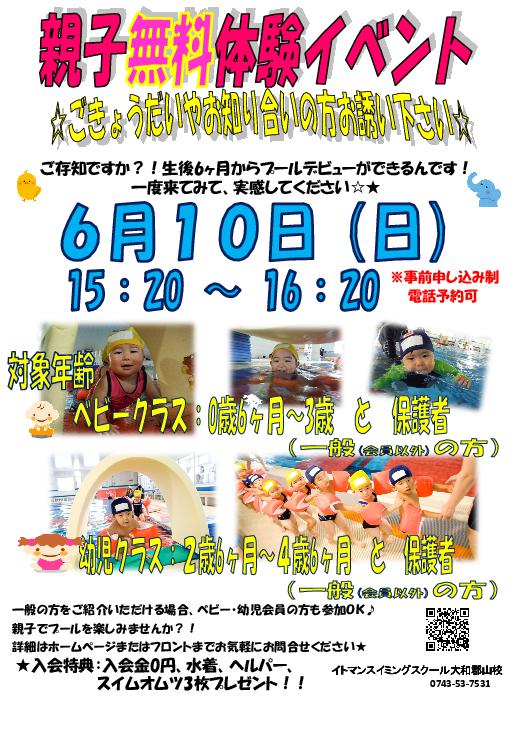 親子無料体験イベント開催のお知らせ♪