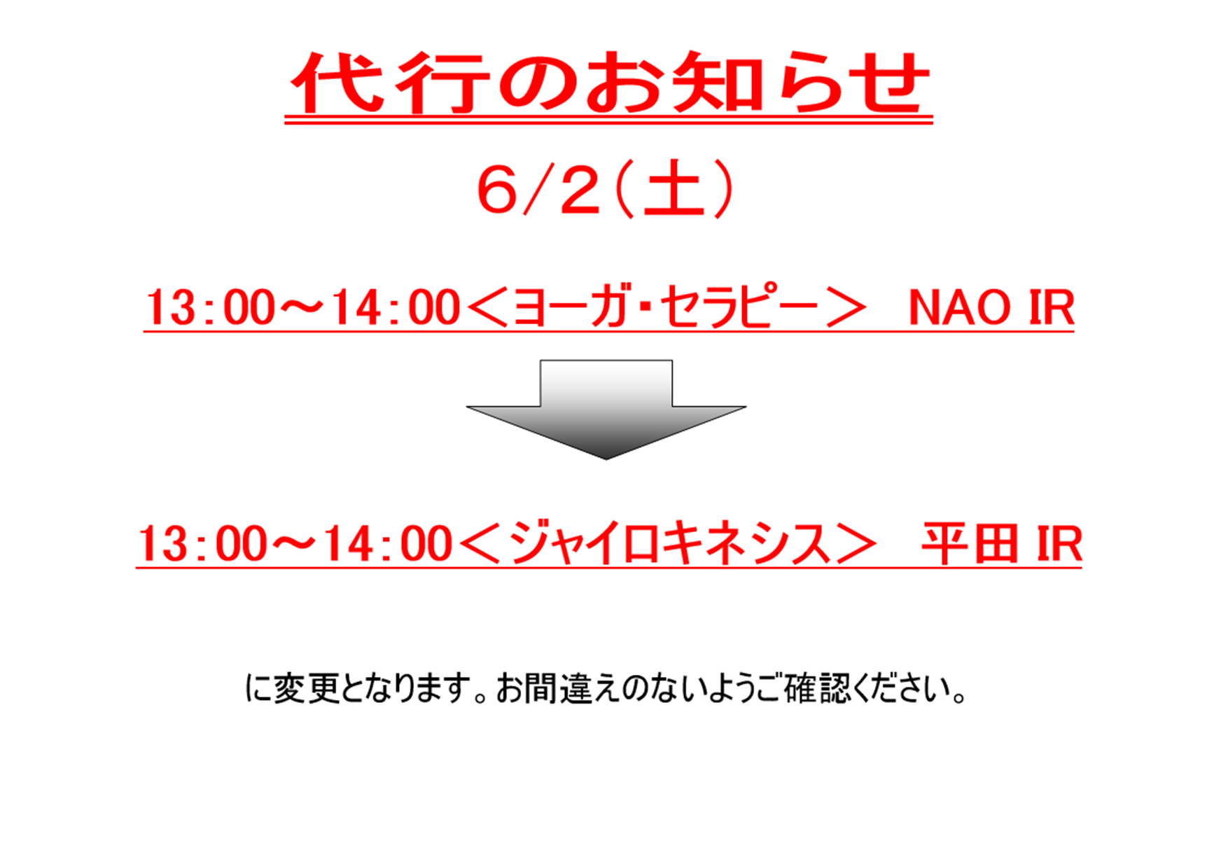 ★6月2日(土)レッスン代行のお知らせ★