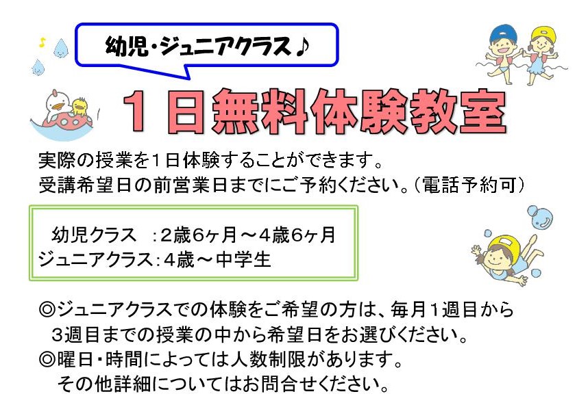 幼児・ジュニアクラス 1日無料体験教室実施中♪