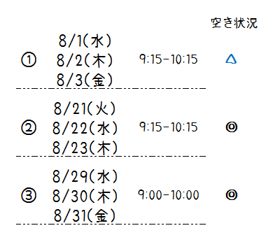 夏の短期教室、空き状況のご案内です!!