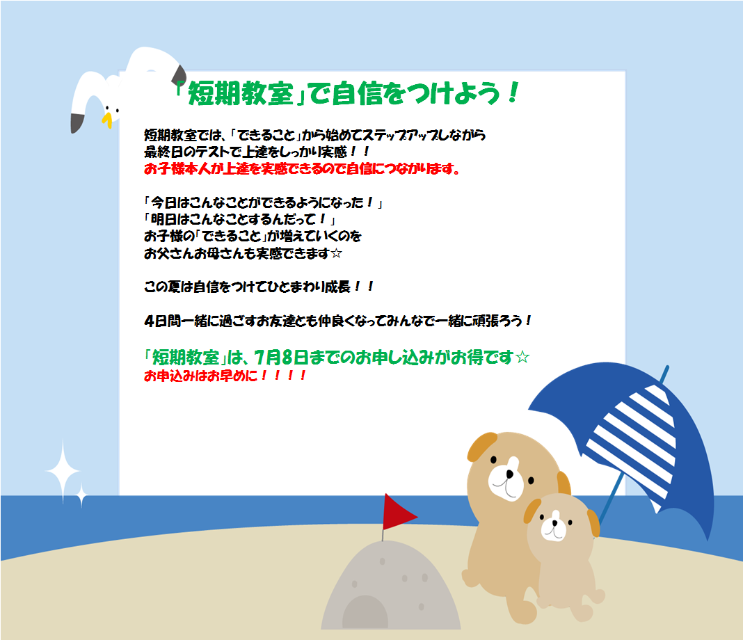 「短期教室」で自信をつけよう!