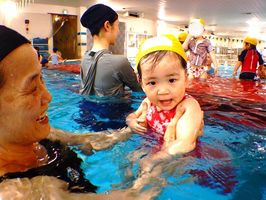 おばあちゃんとの息もピッタリで、飛び込んだ後でフワフワ〜っと数秒間浮けるようになり、顔が上がるとこの出来ぞフェイス! 自分で泳ぎだす日も近いかな(*^。^*)