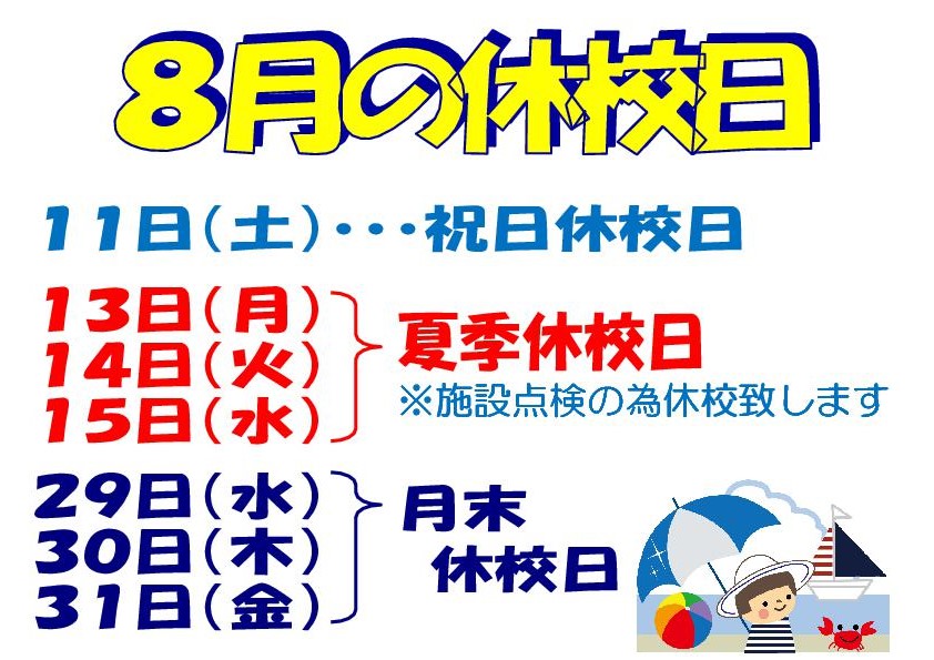 8月の休校日