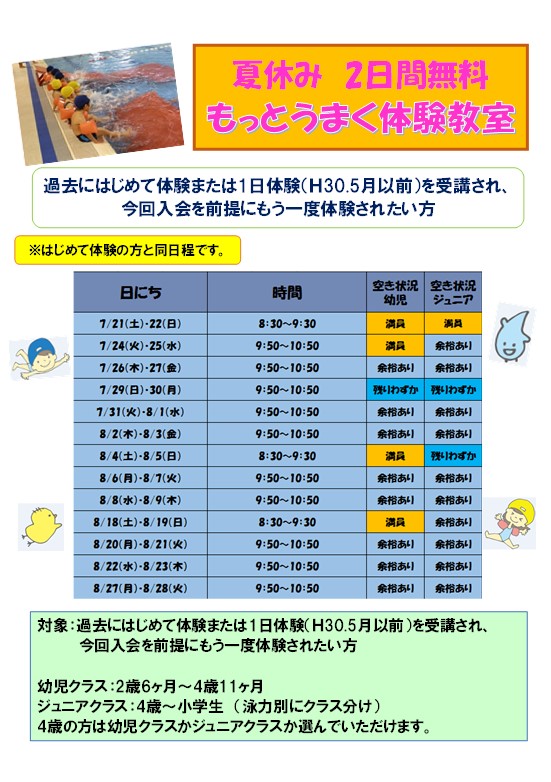 ☆もっとうまく体験教室空き状況☆