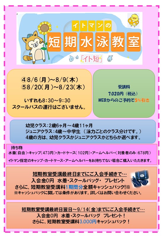 短期教室受講料ご予約受付中!!