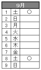 ※ ○がある日が時間変更対象日です。時間につきましては、最下部の表をご確認ください。