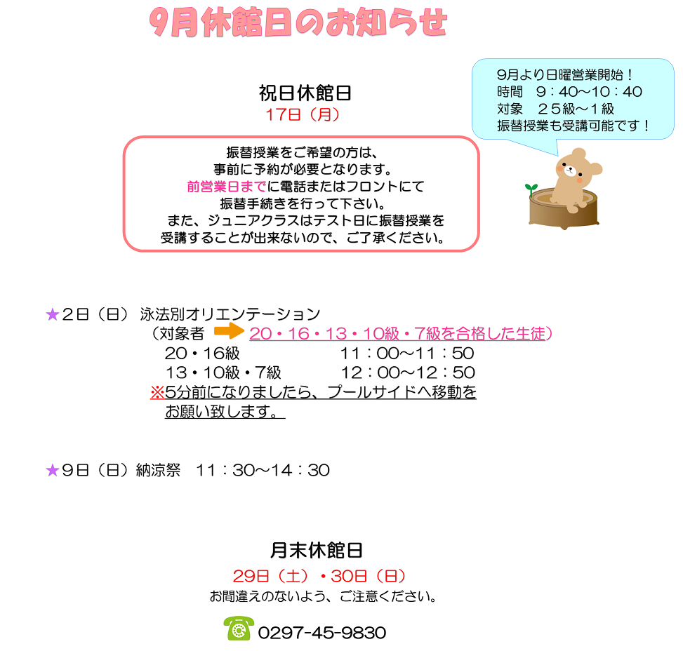 9月休館日のお知らせ