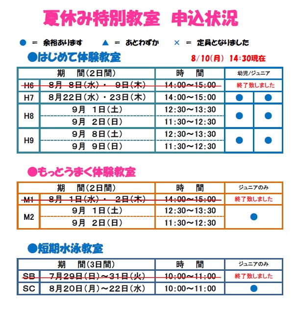 〜 夏休み特別教室 申込状況 〜