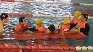 プールの中は、水の浮力で