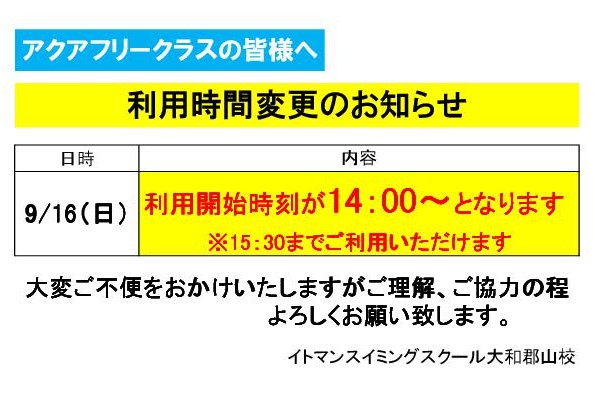 アクアフリークラスご在籍の皆様へ