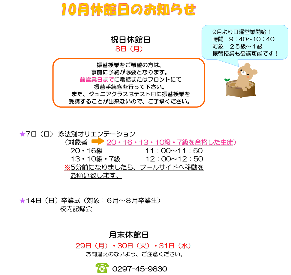 10月休館日のお知らせ