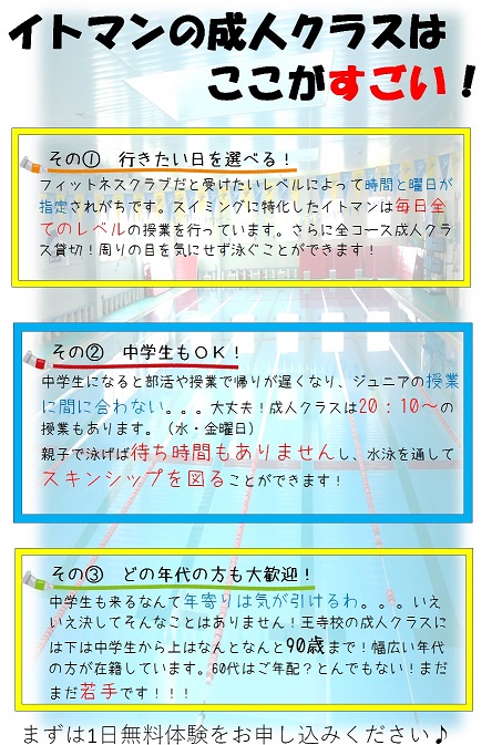 成人クラスで一緒に泳ぎましょう♪