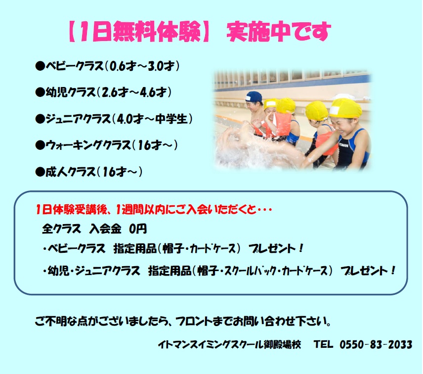 1日体験授業のお知らせ
