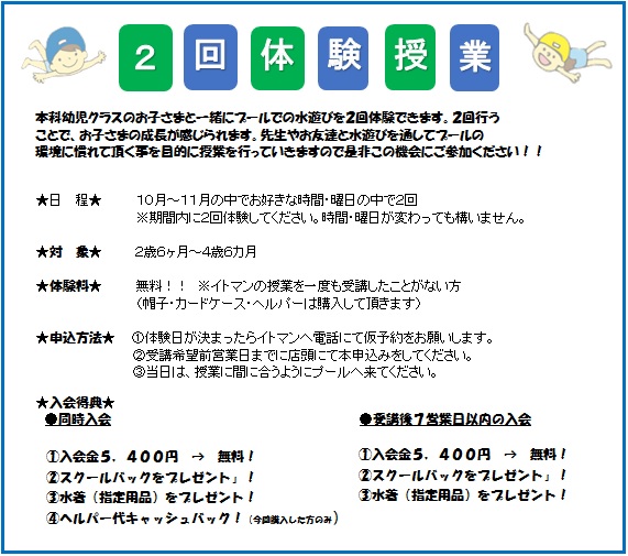 [幼児クラス]秋の体験教室のお知らせ