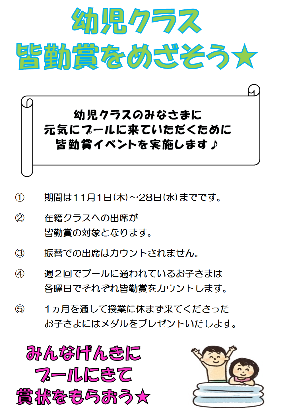 幼児クラス☆皆勤賞☆のお知らせ!