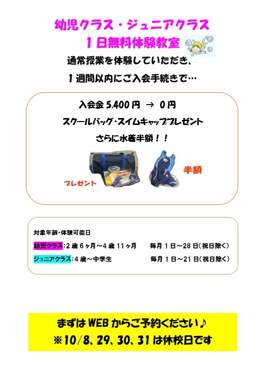※過去に体験を受けたことのある方、再入会の方は対象外です。