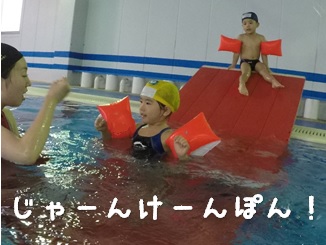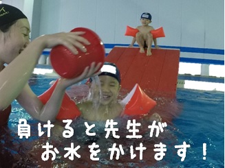 負けると・・・↓顔に水がかかることにより息止めの練習に繋がります!遊びだととっても楽しいですよ