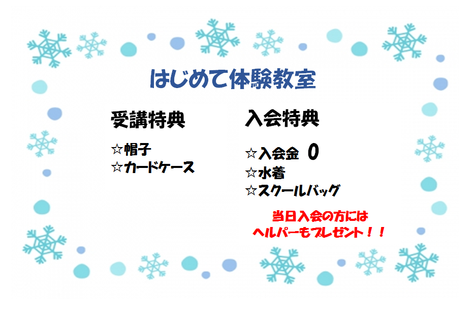 はじめて体験教室 受講・入会特典のお知らせ