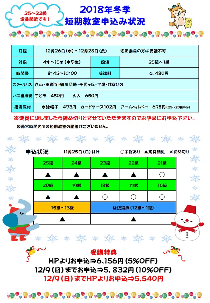 短期教室【申込状況11/25】