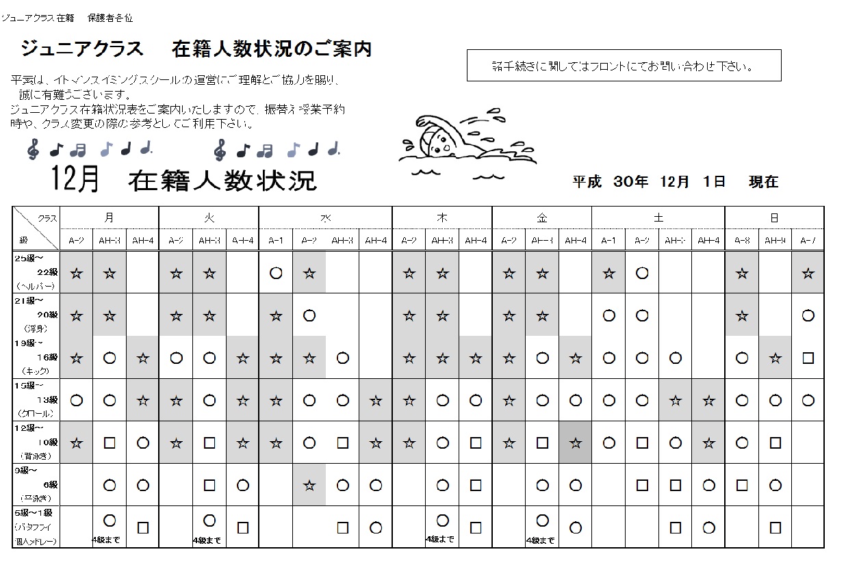 ジュニアクラス【12月度在籍状況表のお知らせ】