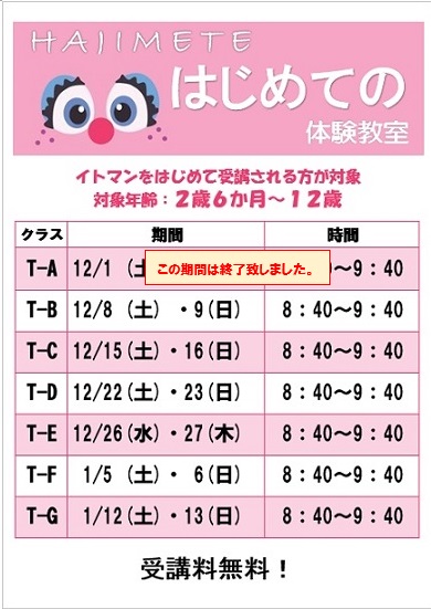 イトマンではじめて水泳体験をする方対象の特別教室です!