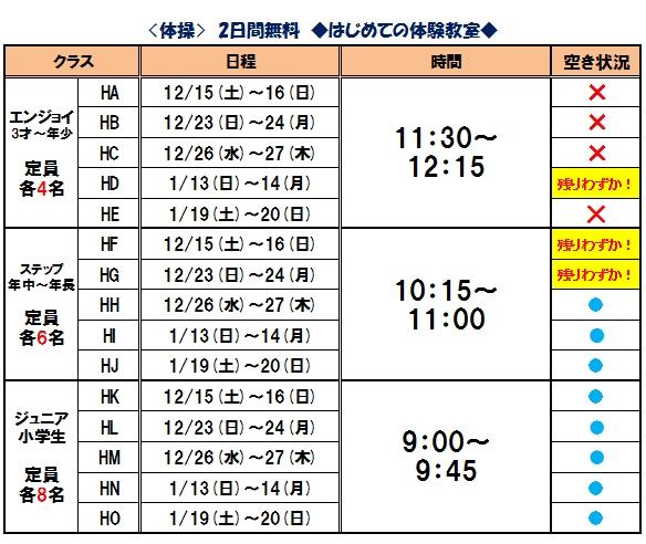 ☆冬休みイベント・体操教室☆