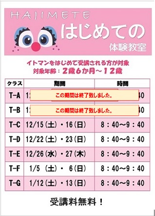 イトマンではじめて水泳体験をする方対象の特別教室です!
