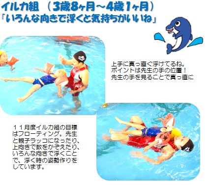 イルカ組さん 11月のレッスン目標は「いろんな向きで浮いてみよう」です。