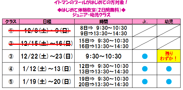 『はじめて体験教室』は、イトマンがはじめての方で行いますので、ご安心してお越しください☆