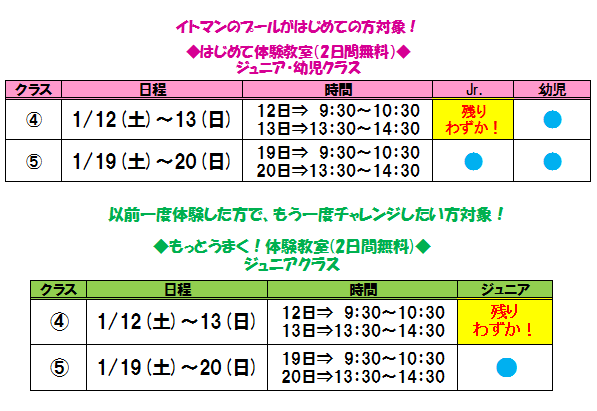 イトマンのプールがはじめての方は、2日間無料!『はじめて体験教室』へ☆