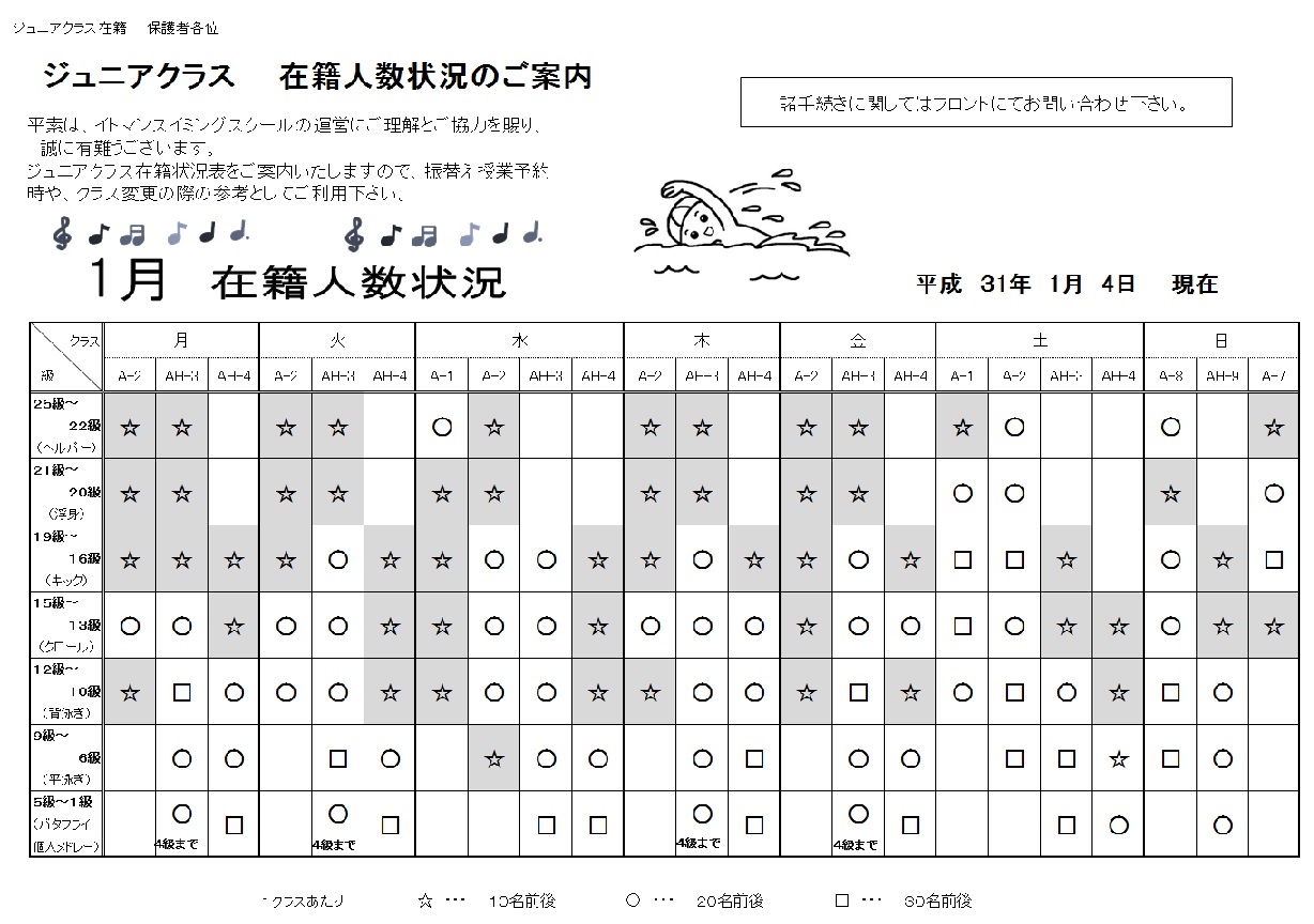 ジュニアクラス【在籍状況表31年1月のお知らせ】