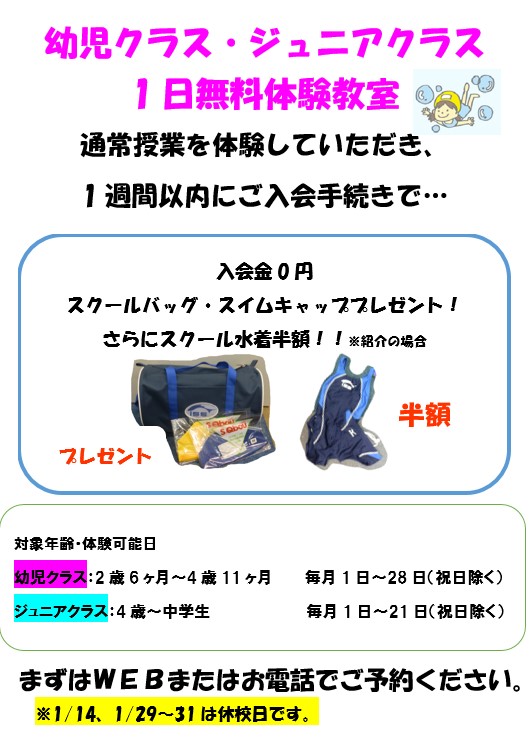 ※過去に体験を受けたことのある方、再入会の方は対象外です。