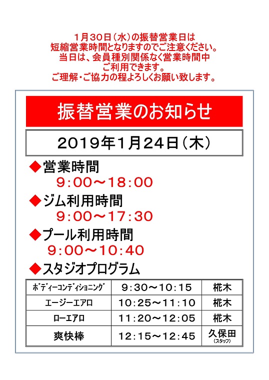 30日(水)臨時休館日のための
