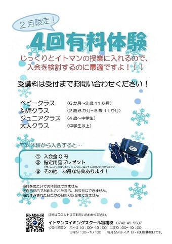また、ベビー・成人クラスは希望日を4回選んでいただきます