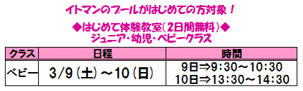 春休みは、ベビーちゃんの「はじめて体験教室」もあります♪